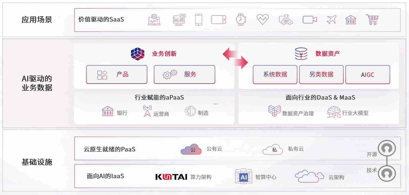 数字时代,,围绕企业数字化转型的关键要素,,,每日大赛数码开创性的提出数云融合战略和技术体系框架,,着力在云原生、、、、数字原生、、AI原生和信创产业上架构产品和服务能力,,,,为处在不同数字化转型阶段的快消零售、、、、汽车、、金融、、医疗、、、政企、、、、教育、、、运营商等行业客户提供泛在的敏捷IT能力和融合的数据驱动能力,,构建跨界融合创新的数字业务场景和新业务模式,,,,助力企业级客户建立面向未来的核心能力和竞争优势,,,,全面推动社会的数字化、、、智能化转型升级。。